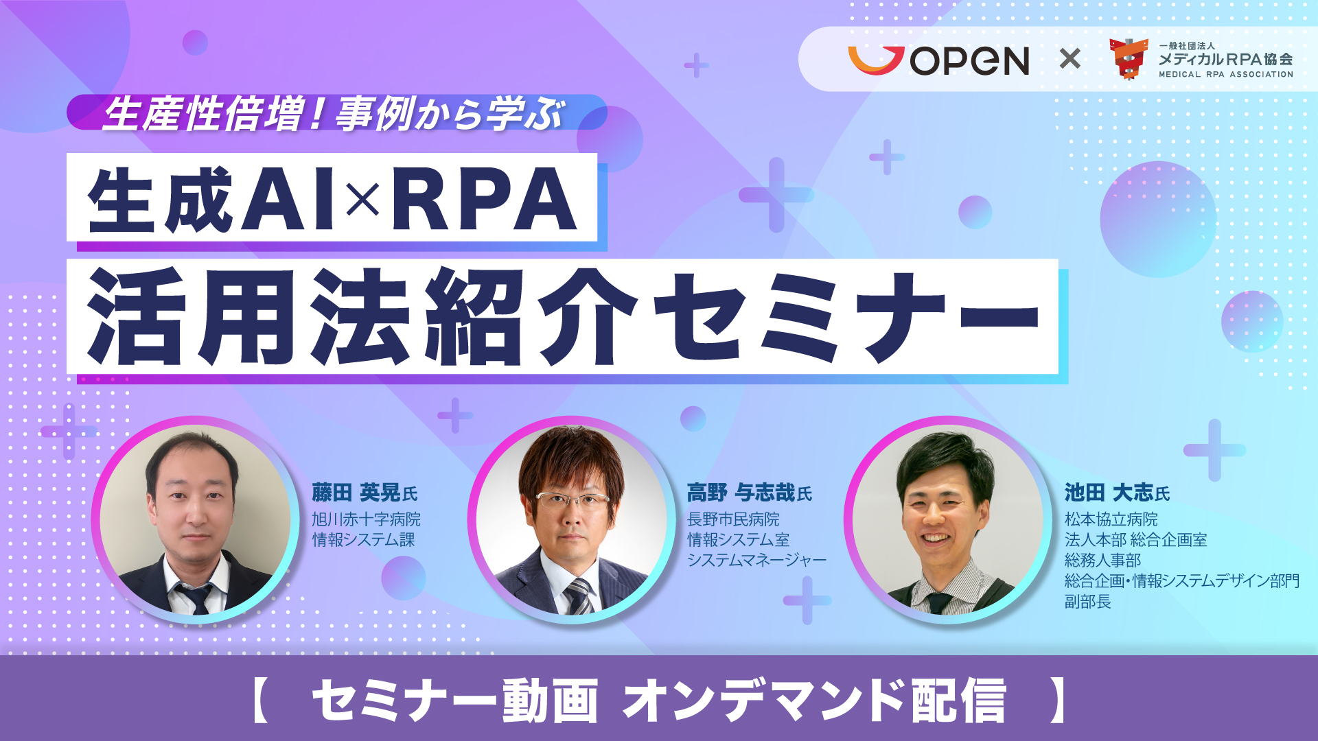- 生産性倍増!事例から学ぶ生成AI×RPA活用法紹介セミナー