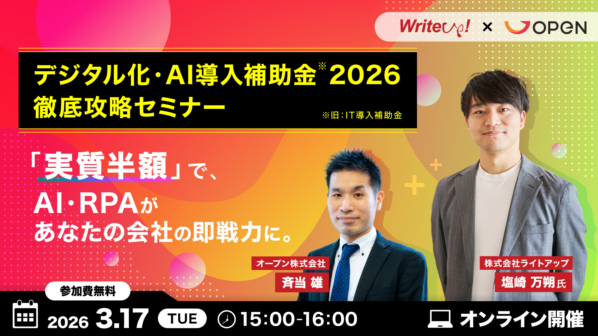 デジタル化・AI導入補助金(旧:IT導入補助金)2026 徹底攻略セミナー